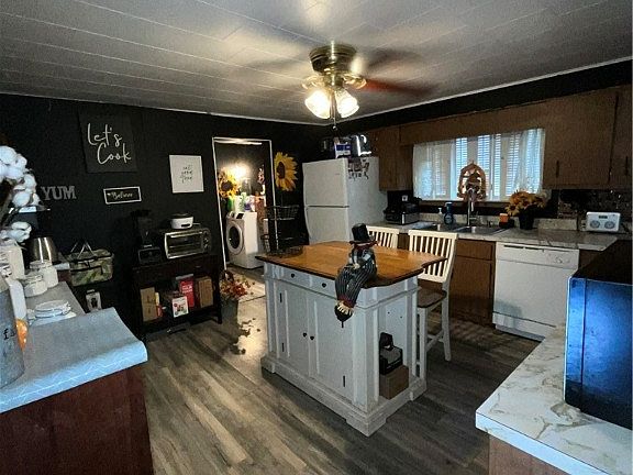 This charming 3-bedroom, 2-bathroom home is located on a quiet dead-end street near the river but outside the flood zone. Inside, you'll find spacious rooms with hardwood floors, central air, and plenty of natural light. The first floor features a large living room, dining room, kitchen, laundry area, and a full bath. Upstairs are three generously sized bedrooms, perfect for any family setup. The large front porch is ideal for relaxing, while the fenced-in yard offers privacy and space for pets or play. The detached 2-car garage and extra off-street parking provide ample room for vehicles. Additionally, there's an adjacent lot for sale, offering potential for expansion. With a little TLC, this home can become your dream space, blending classic charm with the chance to make it your own.