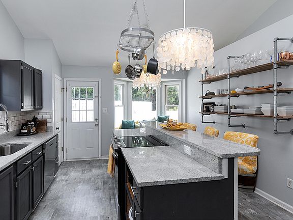 This little gem in the heart of downtown Apex is bursting w/customization. The huge cul-de sac lot boasts a newly renovated open concept kitchen w/ granite countertops, high-end appliances, & new upscale fixtures. Industrial European shelving. Fully renovated master suite w/custom vanity, vessel bowls, & soaker tub. Take advantage of the outdoor gas fireplace on a brand new deck or cuddle up to the wood burning fireplace inside. California closets. Two custom sheds. Walk to the charming downtown Apex.