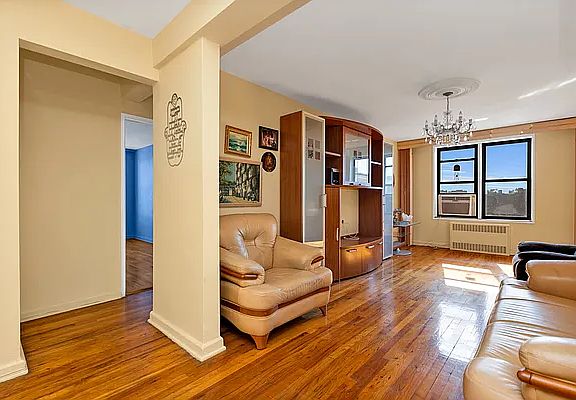 Looking for the perfect place to call home? Look no further than this bright and lovely 2 bedrooms / 1-bath coop on the top floor of a 6th-story building in the great Sheepshead Bay area. This excellent apartment offers magnificent views of the city from all the windows, all separate rooms, a fantastic size kitchen with a dining area, all stainless steel appliances, a completely tiled bathroom with a window, ample of storage space (7 closets!!!) , and hardwood flooring throughout the whole apartment. The unit comes with the storage unit in the basement. The low maintenance fee includes all utilities, including electricity, heat, hot water, cooking gas, and taxes. BUILDING INFO: 100% coop, no sublease! Brand new elevator, an updated laundry room, bicycle storage room, indoor parking (waiting list), private courtyard, and a live-in super. LIFESTYLE: Shopping and restaurants are nearby, as is one of the top public schools in the neighborhood (P.S. 209), Brighton and Manhattan beaches, public transit (B, Q, F trains, B1, B4, B36, and B68 bus lines), and the belt parkway. Quiet building on a tree-lined street! Parking is only available in the back of the building for residents and guests! As always, in Real Estate, Location, Location, Location!