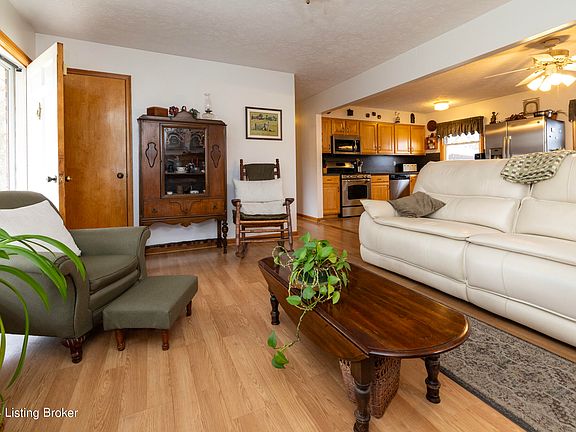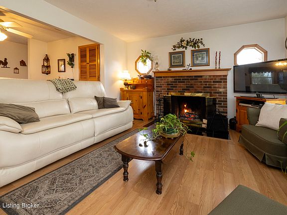 Welcome to this charming 3 bedroom 1 full bath brick ranch with an open floor plan sitting on nearly 1.2 acres to enjoy. A large updated eat in kitchen with stainless steel appliances flows into a cozy family room with a wood burning fireplace and big windows overlooking a covered front porch. The primary bedroom accesses the back deck with a boast & covered in-deck hot tub overlooking a quiet scenic backyard. Along with a laundry room the basement has unlimited potential and formally used as an exercise room and craft room with excess storage. The 2 car garage has an additional 12x20 storage area with electric. The newest addition is another 12x18 workshop building, definitely a handyman's dream. Many home updates include new gutters, siding, windows, hot water heater and refrigerator.