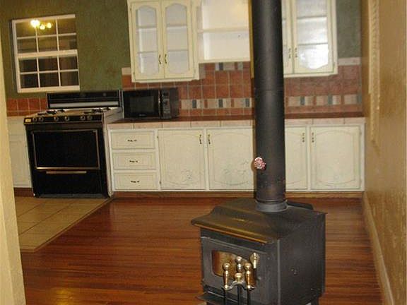 Charming,cute,comfy,clean, casual..... list goes on and on! Partial Open concept between the Living room and Kitchen, Original Hardwood flooring and freestanding wood stove invite you to spend time in this cozy and relaxing atmosphere! Spacious kitchen has been updated with the counter tops and back splash, lots of built-in storage areas, and Enclosed garage addition may be an extra living room for entertaining, a "Man cave" or as a 3rd bedroom! Kitchen appliances stay as the washer/dryer with the house. Vinyl clad windows add to the updated look to this house. Locking wood 8x10 storage shed w electricity is in the back yard for a small workshop or storing lawn equipment. Extra paved parking accessible from the alley. Easy walking distance to the nearby college and a city park as well as the Weatherford Public Pool, this house is move in ready! Add this house to your "Must see" list today!