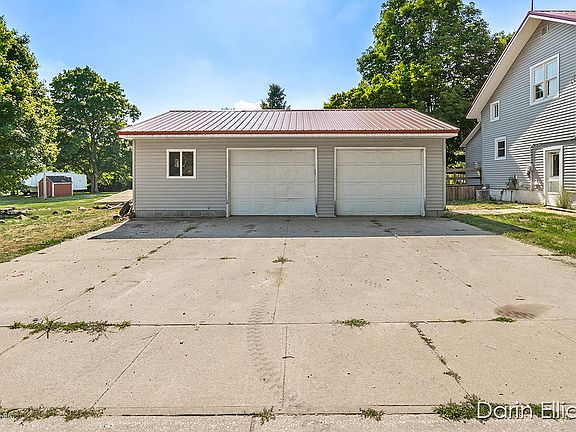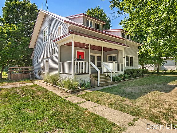 2500+ sq ft 4 Bed, 2 full bath, 2 story home on nearly 1 Acre. Newer furnace, windows, siding, metal roof, front steps, and sewer. Updated kitchen, large living room, and dining area. There are 3 bedrooms up, including the master suite. Lower with Den, living room, dining room, main floor bedroom, large front 10x13 entry with an open stairway going upstairs, with a coat closet. There is a large 10x29x8x24L-Shaped deck off the back of the home with an 21x8 entry 4 season room with sliders to the dining area and the main floor laundry room. Beautiful covered front porch overlooking quiet neighborhood. Hardwood floors throughout. 2+ stall detached garage and an additional garage in back yard. Home is move in ready. Fast possession. Hurry to show!!