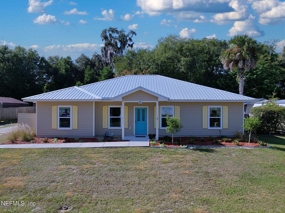 Custom-built 2019 home in a quaint country town with tree-lined streets and stunning views of Crescent Lake, complete with an elevated observation deck. Highly energy-efficient design keeps monthly costs low. Enjoy a spacious 632 sq ft screened porch with wired sound, wood-burning stove, and firepit, offering incredible outdoor living. A gardener's dream with raised beds and room to grow. The New whole-house generator (2025) provides peace of mind during the hurricane season. Garage with workshop, plus easy access to local amenities while still embracing nature and privacy—truly the best of quiet lake-area living.
