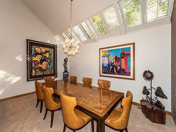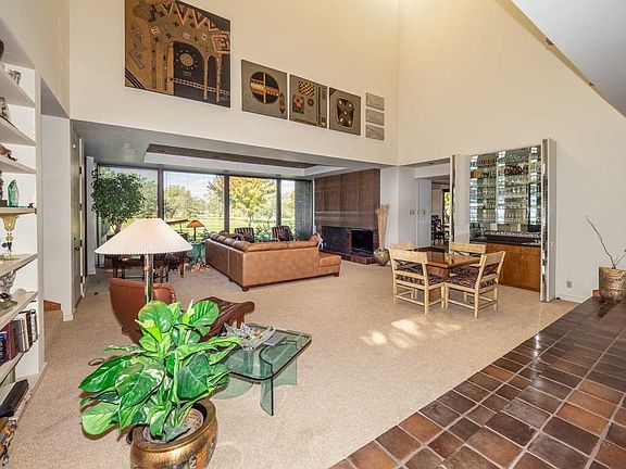 Your dream home awaits in this contemporary gem complete with breathtaking panoramic golf course views, luxurious sunken living room with oversized windows to bring in the natural light, fireplace with brick surround, built-in shelves to display your favorite art pieces, recessed lighting, and door to the covered patio, working from home will be a pleasure in this main floor office which features large windows overlooking the pool and golf course, built-in book shelves, and built-in desk. Cooking will be a pleasure in this updated granite kitchen with one of a kind granite and copper backsplash, island with breakfast bar, oversized Sub-Zero refrigerator/freezer, Miele induction built-in 5 burner range, oven, microwave, and warming drawer, and newer Bosch dishwasher, under cabinet lighting, cabinets with pull-out shelving, walk-in pantry, built-in wine rack, and mixer shelf cabinet. The kitchen is open to the informal dining area and hearth area with built-in desk and fireplace! Dinner parties will be a breeze in this gorgeous formal dining room with built-in buffet with extra cabinet space, stunning chandelier, and plantation shutters. You will love the main floor laundry room complete with tile flooring, counter, sink, closets, and lots of cabinet space. Spend peaceful nights in this fabulous master suite complete with fireplace with brick surround, wall of closets, recessed lighting, loft area, and private bathroom with Corian vanity, double sinks, sunken whirlpool tub with granite tile surround, and granite tile shower with bench. This second level also features a cedar closet, three bedrooms each with their own loft area, and two full bathrooms! The finished basement is the perfect space to just hang out and features a large family room with built-in TV nook and media shelving, library with walls of bookcases, bonus room which would make a perfect hobby/craft room or exercise room, a full bathroom, and storage areas! Sit back and relax out on the covered patio with ceiling overlooking the newly refinished Gunnite pool and hot tub, brick and wrought-iron fencing, and amazing views!