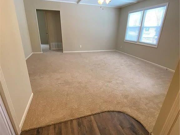This home is ready to move and includes new stainless appliances, new HVAC, new water heater,New Vinyl siding, and new flooring throughout. Nice size master bedroom with his and her closets. Large Living room and thermal windows throughout. Laundry room off of kitchen. Back yard is level and ready for some summer fun. Great starter home or a down size for someone looking for one level living.