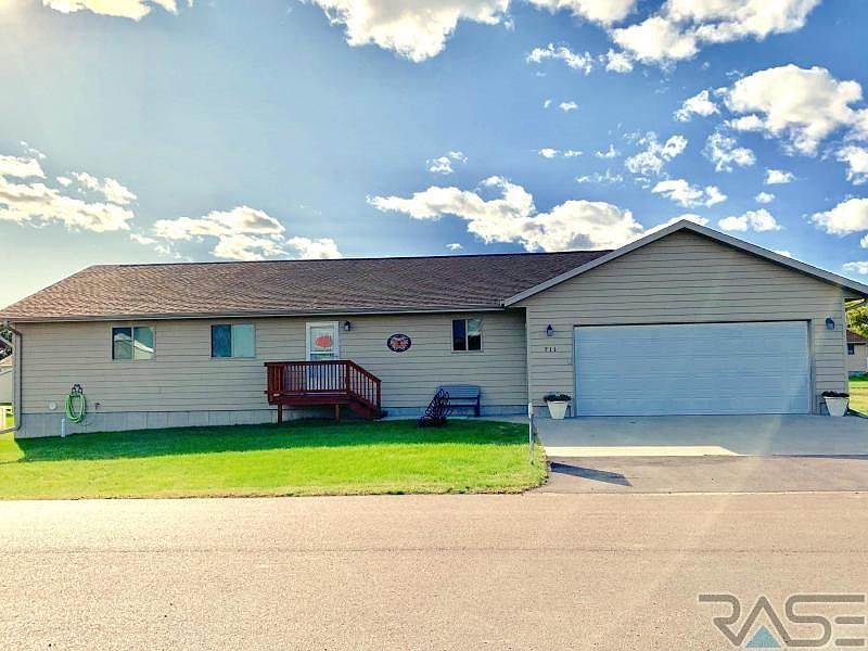 Bright & cheerful Ranch style 5 bed 3 bath home just a short 15 minute drive from Mitchell. Open concept w/ vaulted ceiling, kitchen cabinets galore, main floor laundry, master suite w/ walk in closet, & attached double (heated) garage! Finished basement w/ 2 legal bedrooms (both w/ walk in closets!), ready for you to customize & make your own. A very nice & well cared for home worth looking at!