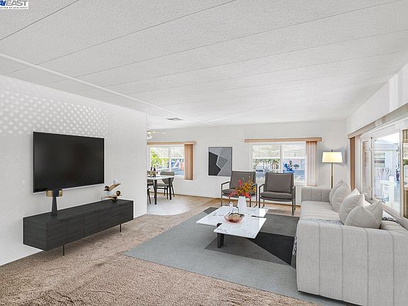 Spacious 1,344 Sq. Ft. 2 Bedroom/2 Bath sunny home features a light-filled floor plan with a large, open living room and dining room with built-in hutch. Florida Room (not included in Square Footage). Beautiful, panoramic view of the rolling hills in Niles Canyon. Dual pane windows. Carport will easily accommodate 2 cars. Large storage shed and low-maintenance yard. Well maintained in turn-key condition! Freshly painted interior. Located in the highly desirable Niles Canyon Mobile Home Estates…a lovely senior 55+ park that offers a year-round heated community pool, clubhouse, sauna & spa, plus many community activities. Fabulously located just minutes to downtown Niles!