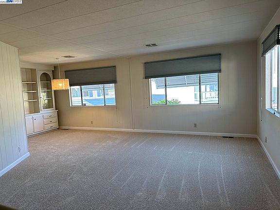 Charming and spacious 2-bedroom, 2-bathroom mobile home in the desirable Niles Canyon Mobile Estates—a Senior Community. As soon as you enter, you are greeted by new flooring and fresh interior paint throughout. The spacious living room/dining room combo includes a built-in China cabinet. The kitchen features a new gas stove top, over-stove fan, dishwasher, garbage disposal, and a newer sink. Earthquake support has been added under the home, along with a newer roof. Enjoy a large yard and a spacious storage unit. Covered parking is also available. Situated at the end of a street, there are no neighbors on one side. The park offers a clubhouse, pool, spa, sauna, billiard room, and more for your enjoyment!