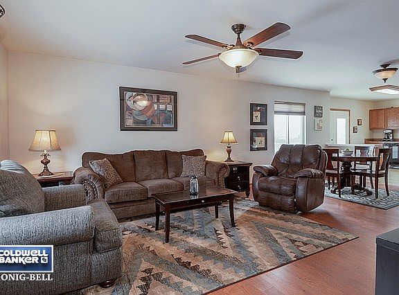 FANTASTIC New Price~Spacious 2 BR/1.5 BA ranch~Full, finished basement provides great opportunity for a 3rd BR~Open floor plan w/wood laminate flooring in living room, dining area & hall~Neutral decor~Spacious kitchen offers good counter space, oak cabinetry, upgraded lighting & newer french style patio doors w/built-in blinds~All appliances included~The finished basement promotes additional living space w/a huge family room, a rec room w/surround sound (this room could convert to the 3rd bedroom), a bonus room/office area & a half bath (there is also a rough-in for shower/tub)~Master bedroom promotes dual closets & brand new carpeting~Several rooms recently painted~Upgraded lighting & ceiling fans~You'll love the new over sized concrete patio perfect for outdoor entertaining~Fully fenced backyard complete w/raised planting beds & fire pit~Enjoy community clubhouse, pool, tennis, volleyball, parks & ponds~Convenient location, close to schools/shopping/d