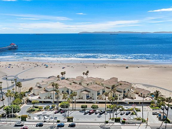 EVERYONE HAS BEEN WAITING FOR THIS! A one of a kind PREMIUM OCEANFRONT SANCTUARY! Welcome to the pinnacle of coastal living, breathtaking Panoramic Ocean Views at the ONLY property on the sand for EIGHT (8)+ miles at Huntington Beach “Surf City “ USA. This exceptional single floor plan residence sleeps six and is a rare find with views from both sides including a private patio with endless vistas of the sparkling coastline. This premium unit has more windows than any other 2 bedroom unit in the complex. Open floor plan to showcase ocean views with custom mirrors. Completely remodeled throughout. Custom Kitchen has views of the pier, granite countertops, quality cabinets with pull-out drawers and ample storage space for everyday living and entertaining. The Expansive Living Area is ideal for memorable gatherings. The corner desk has an added wide window for fantastic views. The Primary Bedroom has spectacular whitewater views, a relaxing recliner, custom wood closets, a peaceful retreat where the sound of the surf will lull you to sleep. Wake up refreshed to enjoy coffee while watching surfers and dolphins on the private patio sheltered from the wind. The full bathroom features dual sinks w/ granite countertops, shower w/ stone walls and stone mosaic trim, soaking tub, and a washlet. The second Bedroom has an added large window with incredible ocean views. Convenient washer/dryer in unit, updated electrical panel, new water heater and plumbing upgrades. All windows and patio doors are newer double pane glass with privacy tinting. Unique to this home is its dual access design: a front entrance door with views of the pier on one side and a sliding glass door opening to the private patio with views of the beach on the other, refreshing cross breezes and maximum privacy. Located in a secure guard-gated community, 2 parking spaces, huge private storage locker for all your toys, and abundant guest parking. Tastefully fully furnished including two smart TVs, all patio furniture, BBQ- turnkey, ready for your immediate enjoyment. Community includes an Ocean-View Clubhouse-with full kitchen, pool table, swimming pool, sauna, gym, fenced private fire pits with BBQs. Enjoy fun activities at the iconic Huntington Beach pier, 4th of July fireworks, Pacific Air Show, the US Open of Surfing and so much more... the ultimate in vacation style living year round. This is more than a home, it's a lifestyle! Come enjoy Huntington Beach Oceanfront Living and all it has to offer!