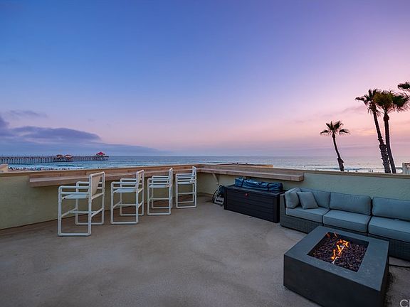 One of the most sought-after units in all of Huntington Beach is now available for sale in this guard-gated community on the sand. This truly is a once-in-a-lifetime opportunity to own one of the few units with a 500 square foot private deck with panoramic, ocean, pier, boardwalk, sunset, Palos Verdes, and city light views. This 2 bedroom 2 bath condo has an open concept on the first floor with a remodeled kitchen including granite counters, new carpet, new paint, and built in bench seating in the dining area to maximize the space. The first floor bathroom is upgraded with travertine tile. The upstairs bath shower and countertops are upgraded with custom stones. Wake up to views of the Pacific Ocean from the master and secondary bedrooms. This home also feature's inside laundry and an under-stair storage area. A condo with these views hardly come on the market and you may be waiting a long time if you pass on this uncommon opportunity. Walk to Main st., Pacific City, 5th and PCH(formerly The Strand), and enjoy all of Huntington Beach's new developments, restaurants, and shops.