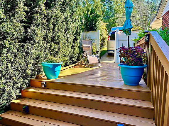 This lovely home has many great features and recent upgrades. It is very spacious inside and out. The large back porch with fenced yard, private deck on the side, and beautifully landscaped yard make the outdoor spaces inviting. The interior offers beautiful floors, including hardwood floors that were refinished this year, three full baths, lots of storage space, two fireplaces, large outbuilding with electric, and much more. The metal roof is 2.5 years old, HVAC is 3 years old, and hot water heater is 3 1/2 years old. This one is a must see!