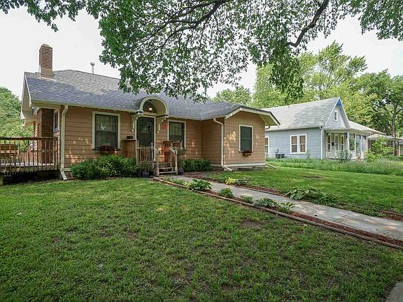 Charmer describes this home. Built in 1940 it has the original hard wood flooring and details. 3 bedroom/2 bathroom home located blocks away from Main street and Wamego City Park-(community pool/playground, brand-new aquatics center, tulip festival, and home to Wamego's 4th of July extravaganza. The family room boasts a wood burning fireplace & mantle with access to a side deck. This home has maintained the original floors, front door, & windows to keep the charm of the time period built. The kitchen has newer appliances, and the owners have painted the outside and inside of the home. Brand new asphalt roof put on by Weddle & Sons May 2019. The 3rd bedroom loft adds textural design while the unfinished basement w/2 egress windows & completely finished full bathroom leaves room to grow. You will enjoy time in the backyard deck with privacy wood fence and the large backyard. Peach tree, apple tree adorn the back part of the yard. No special taxes, new roof, home warranty provided.