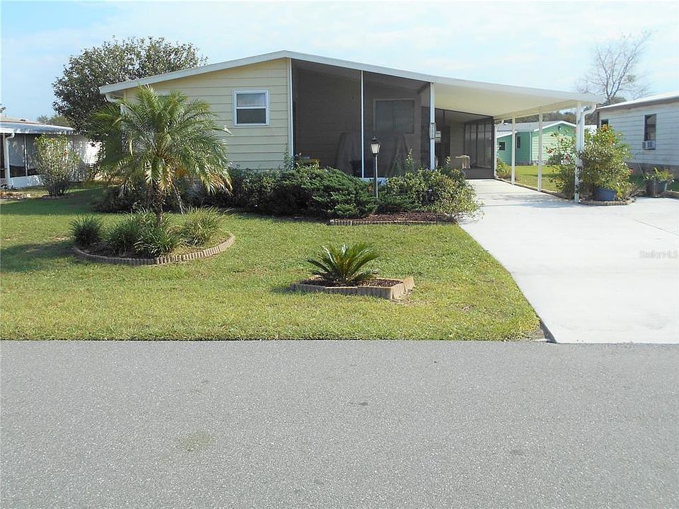 Very nice 2-bed/2-bath home located in the golf community of Polo Park. This home is close to the small clubhouse and pool. It features a nice kitchen-dining area with a corner sink, built-in china cabinet, breakfast bar, closet pantry, smooth top stove, bottom freezer/refrigerator, separate freezer, dishwasher, and garbage disposal. The living room opens into an enclosed bonus room currently used as an office. The guest bedroom is 10x13 while the master bedroom is a massive 12x18, allowing plenty of room for your furniture. There is a 10x20 screen room, a carport & driveway that accommodates three cars and a side parking spot for your golf cart. THIS HOME COMES COMPLETELY FURNISHED! Upgrades include 18 mo old roof (hurricane resistant), Trane A/C installed in2016, new windows throughout (except kitchen/dining area), lateral lateral tiedowns were installed in 2022. Polo Park has two clubhouses, two swimming pools, shuffleboard courts, tennis courts, pickleball and horseshoe pits . The HOA fees are $60/month!!!! Wide variety of activities from sports to arts and crads, and Bingo. You will LOVE this park, so be sure and put this home on your "must see" list.