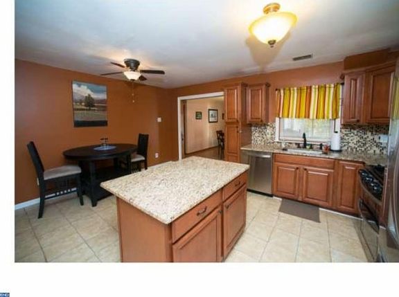 Lovely expanded 4BR, 2 bath ranch nestled toward the end of a dead end, tree lined street. The newly remodeled, eat-in kitchen features LG appliance package, granite counter tops with an under mount sink, new backsplash, garbage disposal, cabinets with crown molding, and an island with breakfast bar seating. The kitchen opens up to a large dining room and family room. These rooms feature laminate flooring and two Anderson doors that lead out to a massive 30' x 16' deck, which is great for entertaining. The family room has newer windows for natural lighting, vaulted ceilings, a ceiling fan light, and a beautiful fireplace. The deck steps down to the patio and hot tub. Both bathrooms have been fully updated and the master suite features a new double vanity and lighting. The home also includes a front living room with a great bay window for natural light and stunning pine hardwood floors. The master bedroom boasts two closets with organizers. The natural pine hardwoods flow throughout the front bedrooms. Other upgrades include new flooring in the mud room, replacement windows, new door handles, many new closet doors, a whole house fan, and pull down attic access. The crawl space under the family room is almost 4 ft tall and has a cement floor for storage. There is also a huge 20' x 15' shed staying with the home. The exterior has beautiful landscaping, a fenced yard, and a driveway that has parking for 5 cars. Gutter guards are installed on all rain gutters. The partial garage has an RV hookup and a separate water line.