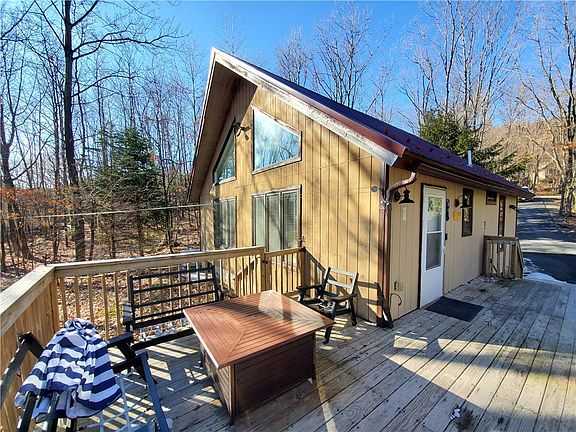 DON'T MISS OUT on this BEAUTIFUL fully renovated chalet home! As you walk up to this expanded deck you're greeted with some amazing Pocono views! This 3 bedroom 2 full bath home features cathedral ceilings in the living room, with a fully updated kitchen and all stainless steel appliances. On over an acre you can enjoy the privacy of a wooded backyard and a utility shed for extra storage. This community also offers a pool and playground! Submit your application today! This home will be open Sunday 9/15 from 2-4pm to tour. Well and septic system. Tenant responsible for electric, trash, yard maintenance, and snow removal. Pets will be considered only with a separate, non refundable pet deposit per pet. MAXIUM of TWO pets allowed. All pets must be under 25 pounds. No smoking permitted on premises.