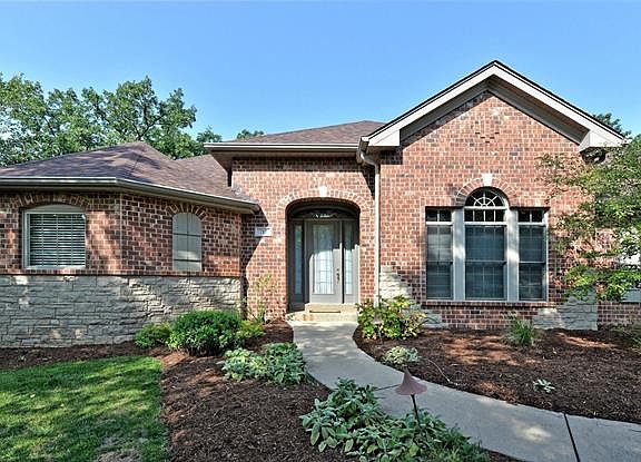 TRULY SPECTACULAR...... A striking brick stone front elevation and beautiful landscaping create high curb appeal for this stunning atrium ranch. The home features 3 bedrooms (Possible 4th), 3.5 baths and appoximately 3,600 square feet of well appointed living space. Special amenities include 9', 12', vaulted and tray ceilings, bay and palladian windows, hardwood and tile flooring, 2" and sheer blinds, columns, 2 fireplaces, a wet bar, lighting display alcove and remodeled laundry room. Set on a beautiful landscaped, private 1.07 acres lot, with woods on 3 sides, and an inviting deck and patio.... This home is conveniently located just minutes from the Gravois Bluffs Shopping Center, dining, and access to MO 141, and interstates 44 & 55. This home is sure to IMPRESS all....So make your appointment TODAY!