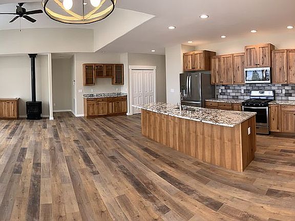 Address is 711 12th Street; Salmon, Idaho. Newly Constructed Home for Sale in Salmon: Experience a beautiful private setting while still enjoying the perks of all city utility connections. This newly constructed one story home allows you the comfort of single floor living and sits in a quiet subdivision with the creek running through the property. Enjoy the opportunity to entertain with an open floor plan and living room that presents large picture windows with stunning views of the mountains. This 2,786 sq. ft. home features 3 bedrooms and 2 bathrooms. One bathroom is attached to the master bedroom and includes a large walk-in closet. Spacious open kitchen with ample counter and cabinet space featuring granite counters and stainless steel appliances. Entire home hardwood flooring and bathrooms have tile. Backyard has a deck. Three car 886 sq. ft. attached garage with storage and workspace in the rear. Heating and cooling source: Heat pump