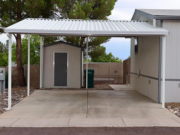 Pride of ownership in this doublewide. Home located at the end of street so there is no thru traffic. Centrally located to shopping, hospital, and transit buses. It's a 3 bedroom, but 3rd bedroom has no closet. Can be used as an office or den. Fenced backyard , low maintenance on a drip system., has views. Kitchen has been updated, new appliances, light, counters, sink. New toilets in baths. Has a nice storage shed. Lot rent is 425. and includes trash service. All appliances stay. Has no age restrictions. Put this on your list to see. Move in ready. 2 car- carport