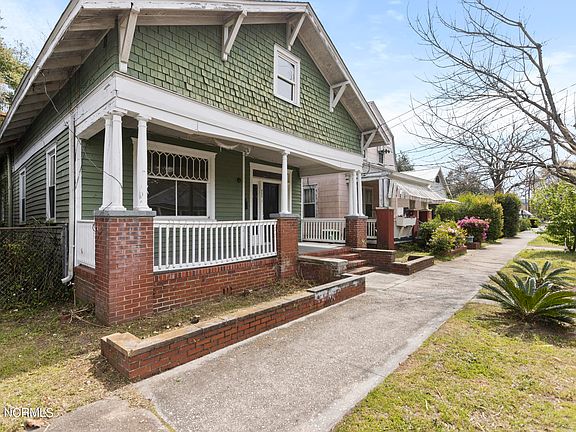 Craftsman-influenced bungalow on cobbled street is just glowing with potential! Covered front porch, shake shingles and brick accents with vibrant sage exterior paint color give all the 1920s charm. Layout comprised of den at left, living room, first bedroom, tiled hall adjacent shared full bath, kitchen, utility room, and finally an additional bedroom. Features include transom door, decorative windows and trim, columns, retired fireplaces, wood flooring. Second level not included in total/heated square footage - offers two additional rooms, full bath, and storage area. Partially fenced backyard. This corridor near historic downtown is definitely in transition! Great location close to MLK Community Center, Wilmington Sportsmans Club, and many more buzz-worthy businesses setting a vibrant, collaborative tone for the cargo district.