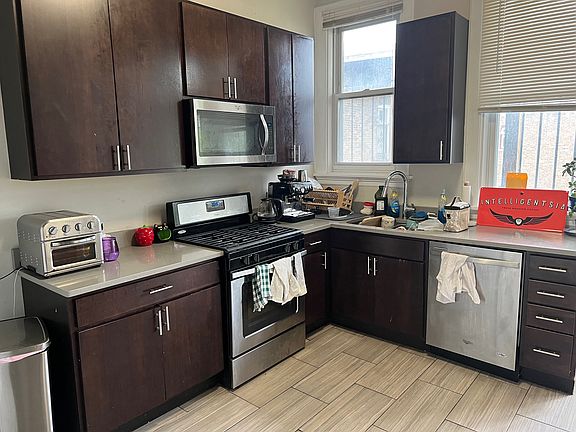 UIC Campus 4 bed 1 bath second floor apartment. Updated with private back deck and in unit laundry. This spacious apartment is centrally located on UIC's campus. Across the street from beautiful Arrigo Park and situated on a serene tree-lined street. This is the ideal location. All bedrooms are private and offer ample space with large closets. Recently updated kitchen features quartz countertops, gas stove, dishwasher and microwave. Stainless steel appliances throughout. Updated bathroom has modern vanity and stand up shower. In unit laundry. Pictures are of a different unit in the building with very similar layout and finishes. Internet, water and trash included in rent. Pets OK. One time move in fee.