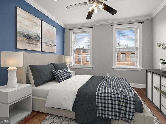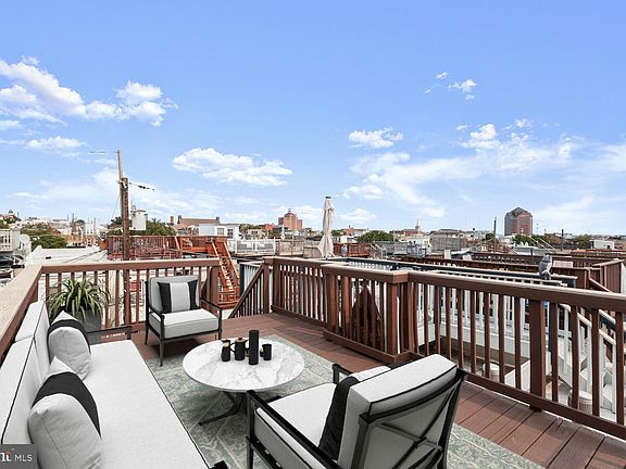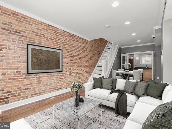 A beautiful rowhome in the highly sought-after community of Canton. In close proximity to Patterson Park and within walking distance of shopping, dining, and entertainment options. Arrive into the main level of this brick exterior home and experience an open concept floor plan that is highlighted by an abundance of natural light that cascades through the floor-to-ceiling windows and onto the brick accent walls and gorgeous hardwood floors. Let the formal dining room guide you into the kitchen and is highlighted by board and batten accents, french doors, and crown molding. Let the impressive kitchen allow for gourmet preparation boasting pendant lighting, a peninsula with a breakfast bar, ample storage, stainless steel appliances, granite counters, and access to the one-car parking pad. Relax and unwind in the primary bedroom with double closets and custom blinds. An additional bedroom and a stunning hall bath with a glass door walk-in shower and jetted soaking tub complete the upper level. Many possibilities await in the lower level with a bedroom and hall bath as a guest area or office featuring plush carpet. Enjoy morning coffee, tea, or evening cocktails on the rooftop deck with spectacular views of the city. Major commuter routes include US-40, I-83, and I-95.