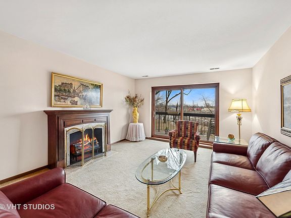 WHAT A VIEW! This 2-bedroom, 2 bath condo in downtown Des Plaines offers a spacious living and dining area with sliding doors leading to a large east-facing balcony, providing picturesque views of the grassy courtyard, Des Plaines River, and River Walk. The galley kitchen includes an eat-in area and another set of sliding doors overlooking the Des Plaines River. The primary bedroom features a walk-in closet and a full bath with a stand-up shower and linen closet. Additional amenities include a deeded parking space in the heated upper garage, ample visitor parking, a party room, fitness room, grassy courtyard along the river, laundry facilities on each floor, and storage. The unit has been well-maintained with updated furnace, A/C, windows, and sliding doors, though it retains its original decor and is being sold as-is. The location is ideal, within walking distance to downtown Des Plaines attractions such as the Metra station, library, dining options, and theater, and just minutes from Interstate 294 and O'Hare Airport.