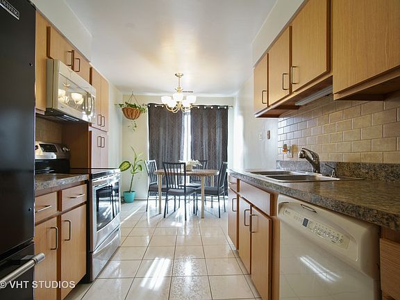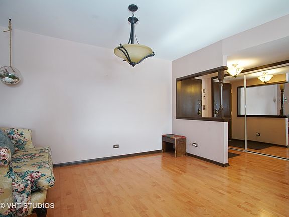 Corner 2 bed 2 bath home. Bright and sunny. Double balcony access from kitchen and living rm. Coin laundry on floor. Steps to downtown Des Plaines restaurants, shopping, library, and Metra. Remaining special assessment paid by seller. No dogs.