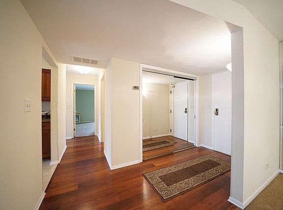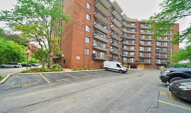 Heart of Downtown Des Plaines Spacious ,sunny and ready to move in - Corner unit 2 bedroom 2 full bath condo on 3rd floor. Separate living and dining room reading to 21 x 5 balcony overlooking the courtyard. Good size kitchen with Cherry cabinets. Huge Master bedroom with separate bath and walk-in closet. Central air and heat. Heated garage space # 3 and outside assigned space # 43. Lots of visitor parking. Close to the Metra , Express-way and upscale Metropolitan Square. 30 minutes to downtown by train and 10 minutes to O'hare.