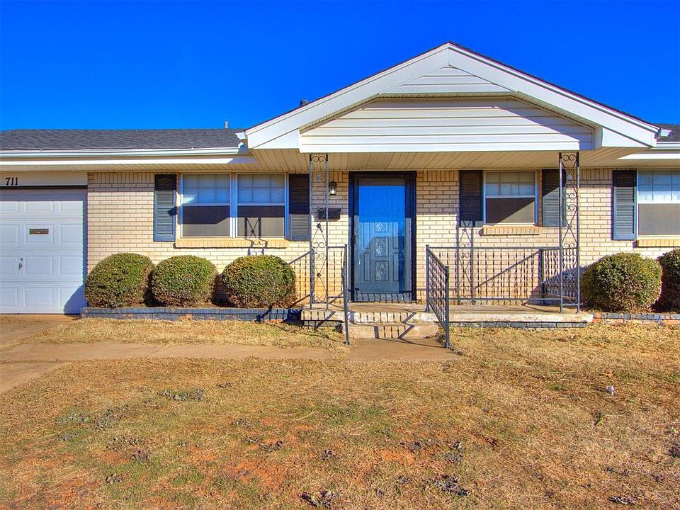 Come see this 4 bed 2 bath home in Moore schools! This home has a large primary bedroom with a big bay window, fireplace and double closets! Cozy living room and kitchen with updated paint. House comes with an above ground OZ storm shelter and a decent sized workshop in the backyard! Located off 4th st and minutes from shopping and I-35.