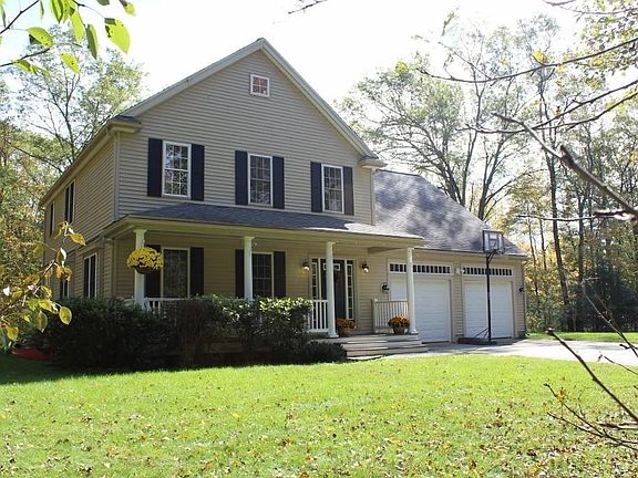 Great new price! 4 Bedroom Colonial built in 2003-04 set on a nearly 10 acre wooded lot in an area of similar age homes. Private yard with the home set well back from the road with a full wrap around lawn/yard, attached two car garage, front farmer's porch & 14' x 14' rear deck. Great home for entertaining with a spacious 12' x 25' front living room, adjoining dining room leading through to an eat-in kitchen & a sunken 13' x 17' Family Room with cathedral ceiling, skylights, fireplace, slider leading to the back deck & all with hardwood floors. First floor Master Bedroom with new carpet, double closets, cathedral ceiling, bath with shower, tile floor & two sinks. Second floor has 3 large bedrooms with new carpets & includes a 13' x 23' bedroom over the garage, a 12' x 21' den/family room ideal for entertainment center/study area/exercise room, plus two 11' x 16' bedrooms & a full bath with two sinks. Located in the charming & affordable town of Oakham, about 20 minutes from Worcester.