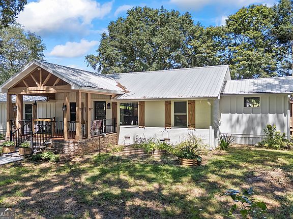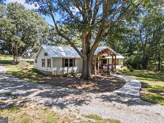 Discover your own slice of paradise with this stunning hobby farm, offering serene living on 7 picturesque acres. This thoughtfully designed home features a modern kitchen with custom cabinets, quartz countertops, and stainless-steel appliances, opening into a spacious breakfast and living area with ceramic plank tile flooring. Enjoy the luxury of a separate bedroom plan with an additional flex room, perfect for a large walk-in closet or additional bedroom. Home office/bedroom off of the great room with barn door and spacious laundry room with custom cabinetry for storage. The expansive master suite boasts a vaulted solid pine tongue-and-groove ceiling, his-and-hers closets, and a beautifully appointed master bath with custom cabinetry and a large, tiled shower. Step outside to your own private oasis, complete with a recently added sunroom, a generous deck with covered grill area complete with outdoor fan/lighting/power for entertaining, a huge 12x18 rocking chair front porch with vaulted ceiling, and a 24x40 metal building on a concrete pad, ideal for hobbies or storage. There is also an old barn currently used for storage. Two additional parking sheds (24x24 and 12x20) provide ample space for your equipment or vehicles. The open land is partially fenced, offering endless possibilities for gardening, farming, keeping animals or building an additional house. Access the property via double road frontage on Teresa Atkinson Rd and Shackelford Road. A quaint orchard and a 30x60 pen with a custom-built doghouse/storage building, county water and underground utilities. complete this remarkable property. Beautiful sunsets, no HOA, and located only 10 minutes from I-85. Owner/Agent.