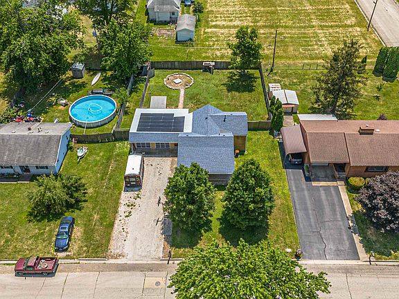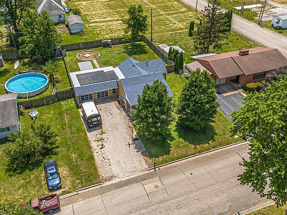 Vintage 2 bedroom, 1.5 bath brick bungalow flanked with classic stone touches! The undeniably comfortable interior boasts a front facing living room, equipped kitchen/dining concept host to built-in bookshelves and an adjacent walk-in pantry, two comfortably sized bedrooms -- one with an adjacent half bath -- the other with an adjacent walk-in closet -- both with built-ins, a full hall bath, and a large 10X18 enclosed breezeway (NOT included in main floor square footage) connecting the house to the 23X22 2+ car attached garage. Property also features a covered front porch, rear patio, privacy fenced backyard with a firepit and storage shed, replacement windows, partial basement with mechanicals, laundry facilities, and ample storage/work space, newer roof (within the last ten years), and solar panels (installed by Sunrun in 2023). Priced to attract attention and to move swiftly -- call your agent of choice today!