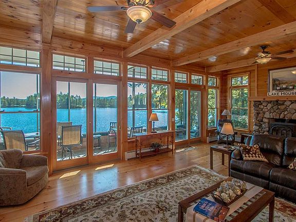 Deluxe Waterfront Home - This is the property that dreams are made ofâ¦situated on the shores of pristine Conway Lake, this home moves beyond luxurious with too many amenities to name. The home itself is expertly crafted using locally harvested pine, and no detail was spared. Spacious rooms full of light welcome you in, and the view of the Lake is restful and relaxing. Chefâs kitchen, a master suite, 3 additional bedrooms including a loft offer unlimited entertaining potential. Step outside onto one of the 2 patios that overlook your deepwater dock complete with diving board, and your own dock with room for two large boats. Enjoy late summer evenings around one of the three firepits, watching your outside TV, staring at the stars in the hot tub perched on the patio, and wash off in your outside shower. Breezeway leads to a large two car garage. All of this majesty is set on 1.81 acres of privacy, with direct access to snowmobile and hiking trails.