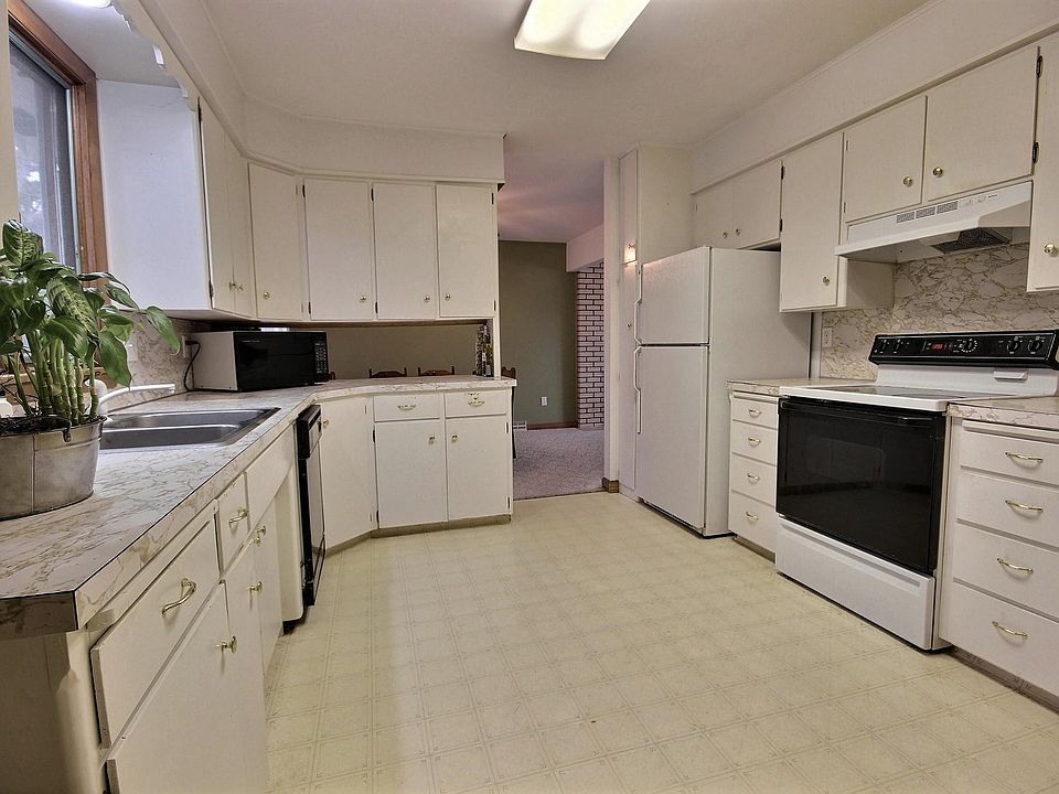 Open living room, 3 bed, 2 bath end unitThis home on the corner is located in a neighborhood that is close to schools. But truth be told it is in need of some work. This house made someone a great home for many years, but now the updates are needed thru out. Bring your vision when you come to look at this home which offers a large living room open to dining room. The kitchen is more spacious than most with a lot of cabinets and even room for a small island. There are 3 bedrooms on the main level. The bathrooms have had recent tile work done so some of the work has been started. The lower level features a family room, laundry room, and 3/4 bath with new walk in tile shower. There is an oversized double garage. The corner lot is a pie shape that offers flower/garden beds in tiered levels at the back of the lot. The shingles were replace in 2016, but there is some siding that is in need of replacement and windows are ready to retire. If you have the vision and tools you could make this house a home. This property is being sold as is, where is, no warranties or guaranties. Call today to set up a showing.