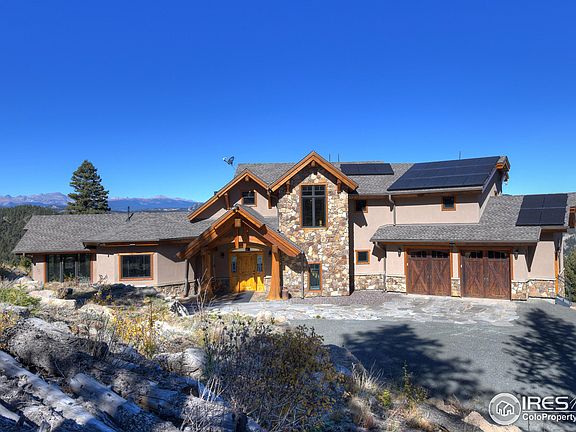 Sitting Bear Ridge. This secluded mountain property offers the perfect marriage of utmost luxury & natural beauty surrounded by complete serenity. Featured in Log & Timber Home Living this off-the-grid living includes extensive solar panels that will power the property. A charming front porch & log entry greets your arrival. Upon entry, you will be Wowed by the awe-inspiring scale of the endless views that follow you throughout the home and are present in every room. Aspen leaf design details & beamed ceiling capture the eye. The great room features a soaring ceiling, expansive windows, & two sided fireplace. The kitchen boasts raw edge granite with mountain backsplash, premium appliances, & plenty of storage. Indoor/outdoor living at its finest; watch the wildlife from the sunroom or from the main deck. The main level bedroom or office is highlighted by a private deck. The upstairs owners' suite is accented by a cozy fireplace, private deck, & luxe 5-piece bath complete with a jetted soaking tub surrounded by unbeatable views. On the lower level, you will find a nearly completed wine room that is ready for your finishes. Two secondary bedrooms are spacious & bright. Walk out to the covered patio, the perfect spot to soak in the ever-inspiring drama of this remarkable setting. 70-acre property on 2 parcels provides total privacy & seclusion.