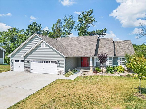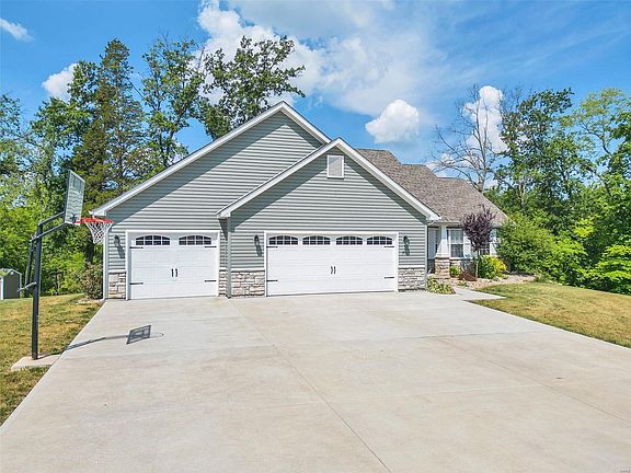 Nestled in a quiet cul de sac, this 4 bedroom home has all the space you need & privacy you crave. Rich hardwood floors greet you into the great room with soaring vaulted ceilings & picturesque views of the back yard. The great room opens up to the breakfast room & kitchen which boasts breakfast bar, large walk in pantry, tile backsplash, & wood pallet accent wall. Open the glass slider door to large covered composite deck that is ideal for entertaining family & friends for summer evening cookouts. The level backyard BACKS TO TREES for shade & privacy. Convenient main floor laundry. Relax & unwind in your spacious primary bedroom suite w/ walk in closet, dual sinks & separate corner tub & shower. 2 more bedrooms each w/ ceiling fans. The finished lower level has loads of space including a large rec room with bar area, separate living room w/ gas fireplace, bathroom with tile surround shower, & 4th bedroom. 3 car garage! Close to Hwy 70. Wright City Schools. Schedule your showing today!