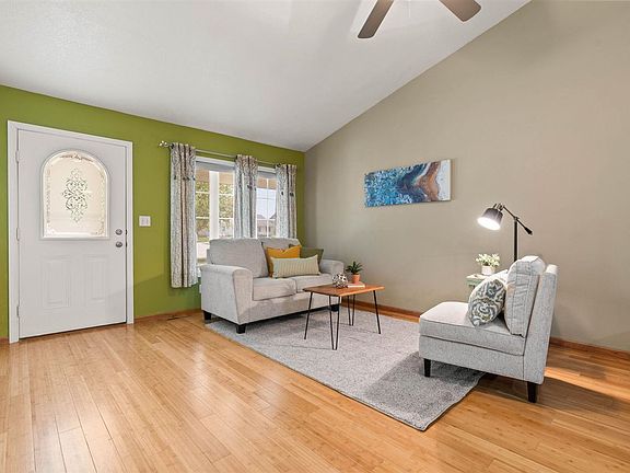 Attractive 2-bedroom, 3-bathroom zero entry home ready for new owners! The front porch leads you into a quaint living room with a vaulted ceiling and wood floors. Large kitchen with abundant cabinetry, island, pantry & appliances included. Convenient backyard access off the kitchen. 2 bedrooms, full bath and laundry room on the main level. Primary bedroom with a generous walk-in closet and ensuite. The lower level offers a family room with kitchenette area, non-conforming bedroom/bonus room and a full bathroom. Outdoors you will find a fenced yard, patio & garden shed all overlooking the private backyard. 2 car attached garage. Abundant storage throughout. Excellent location!