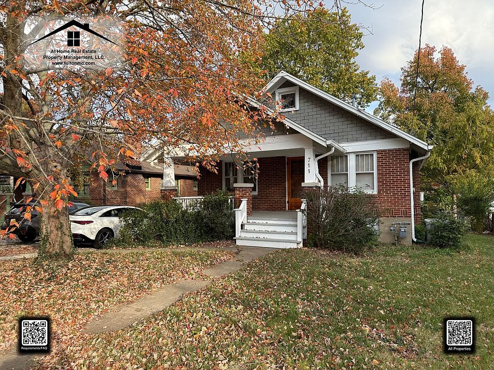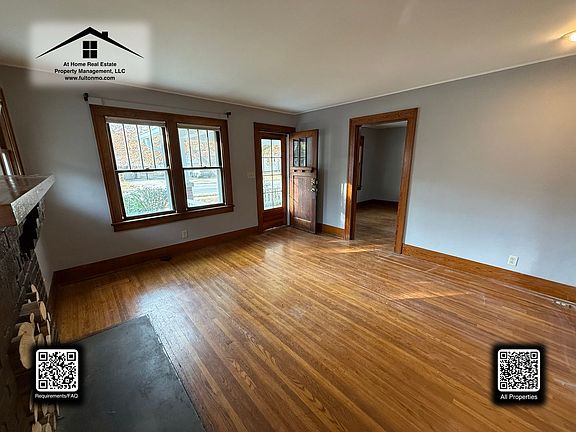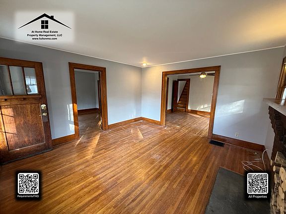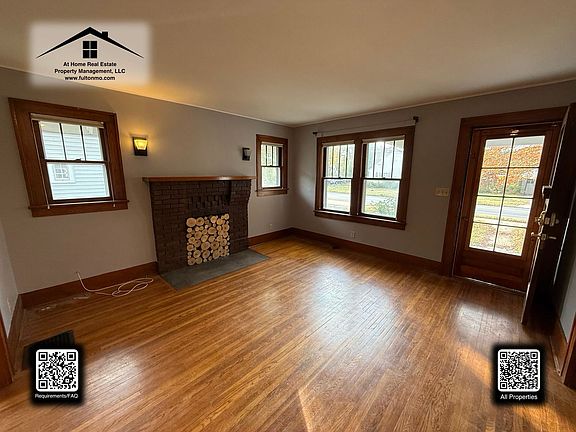 This inviting brick home offers features two comfortable bedrooms on the main level, a bright living room with a decorative fireplace, and a dining area, with hardwood floors and plenty of natural light. The updated kitchen includes white cabinetry, essential appliances, and a convenient layout. Upstairs, the loft space serves as a versatile bedroom area, complete with built-in stained glass cabinetry, and multiple skylightsperfect for a bedroom, home office, studio, or reading nook. Both full bathrooms are tastefully designed, with the loft bath featuring a skylight and custom shower. The multi-level deck opens to a fenced backyard with mature trees, providing privacy and an ideal spot for outdoor enjoyment. A basement-level laundry area and extra storage add to the home's functionality, making it as practical as it is charming. The property also comes with the washer and dryer. We are finishing up, so excuse the mess in the photos. Scan the QR code in the listing photos to view all our available listings, learn about our Application Requirements, and submit your application.