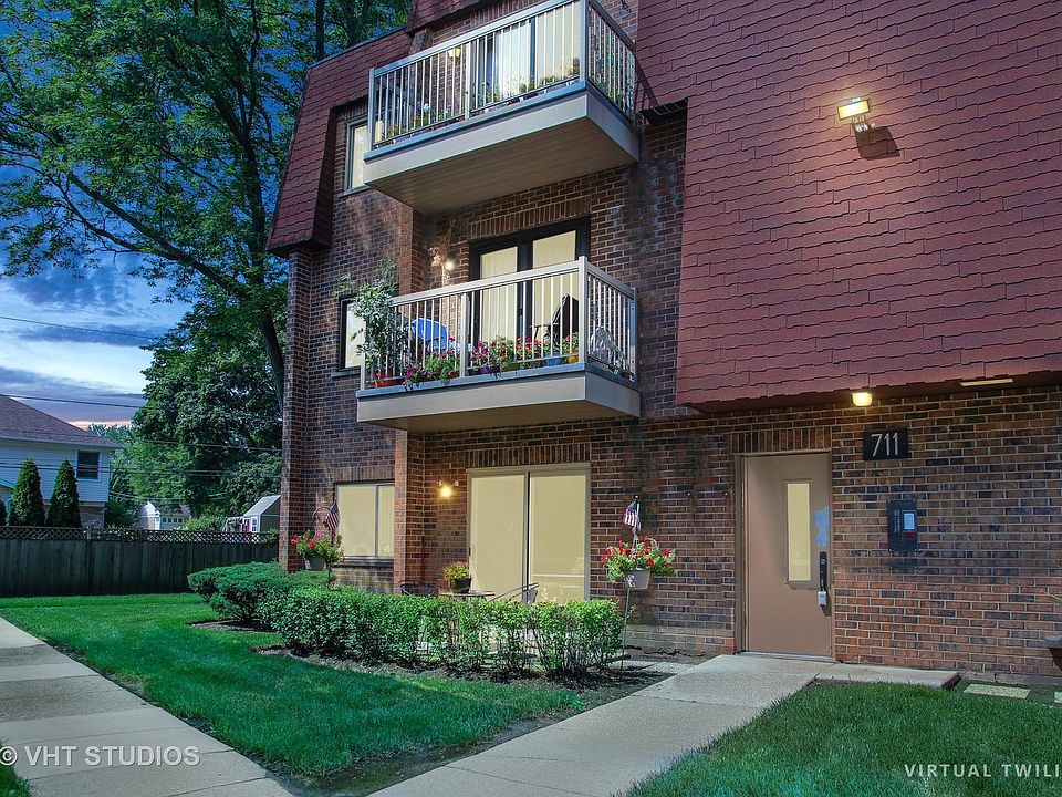 Great courtyard unit, ground floor entry - no stairs. In unit washer/dryer, upgraded kitchen cabinets, new windows, updates throughout this lovely 1 bedroom. Close to restaurants, shopping, downtown Mt Prospect and parks. Great place for snowbirds. Low association fee. Must be 55 or older to live in this unit. Move in ready!