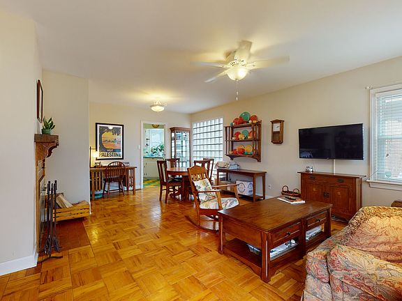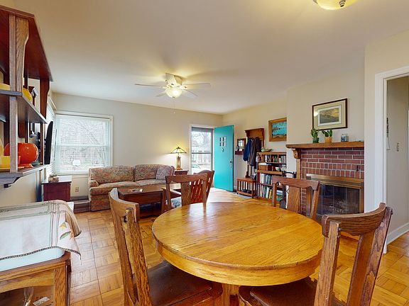This home is conveniently located in a historic neighborhood with vintage street lamps. The block has houses only on one side of the street, as the other side was home to the historic "Millionaires' Row"--the mansions on University Avenue with backyards that go all the way to Clark Street. This home features stone siding on the front for beautiful curb appeal. The front door opens into the large combination living room/dining room, featuring a wood-burning fireplace, original solid oak parquet floors, and a huge glass block window that helps flood the room with natural light. The kitchen boasts original cabinets and counters--complete with stainless steel edging. The kitchen includes a retro-styled modern gas range, as well as a vintage General Electric refrigerator that the current owner acquired just to match this kitchen. The screened back porch--one of the current owner's favorite features--overlooks the deep terraced backyard. The two bedrooms feature parquet floors and corner windows. The entire house features modern vinyl replacement windows. See HD photo gallery and 3D virtual tour! Home offered with a 14-month Home Warranty, Inc., warranty!