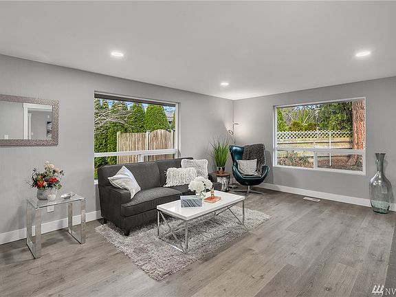 Beautifully remodeled move in ready 4 bed 2.25 bath rambler style home on a gorgeous near 1/4 acre corner lot. Fully upgraded kitchen w new stainless steel appliances, Cabinets, and stylish quartz countertops. Kitchen leads to welcoming living room w 2 sided fireplace. Dining room leads to large patio & fully fenced back yard that is an entertainers dream. All new carpet LVP flooring & LED light fixtures. Enjoy the finish of the new millwork doors hardware & windows. Front yard has amazing street appeal w its mature landscaping, newly painted interior and exterior. Great Home in an established neighborhood. Walk to restaurants & shopping. Easy access to I-5. Brand new 30 year roof. Home comes with a seller paid 1 year warranty