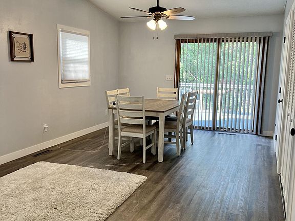 - Description: Ceiling fan, sliding glass door to back yard/deck
