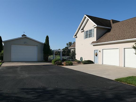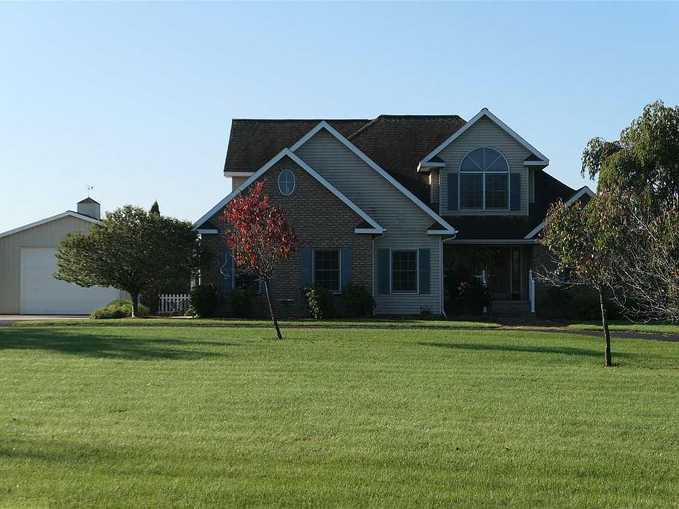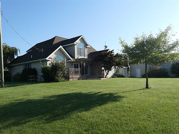 Country Charm, City Convenience! Welcome to your 4 bedroom, 2 ½ bath home on 10.76 acres. Home features main floor master bedroom and master bath with his and hers sinks, 3 bedrooms and a bathroom upstairs, main floor laundry and a partially finished basement just waiting for the finishing touches. Outside there is a large 24x48 pole barn, circle driveway, paved road and a back deck to drink your coffee on in the morning. Updates includes furnace 2013, Central air 2013, Partial roof replaced, and newly paved road. Built in 2000 with Vetter windows and Kraftmaid kitchen cabinets, this home won't disappoint. Home includes a one year home warranty.