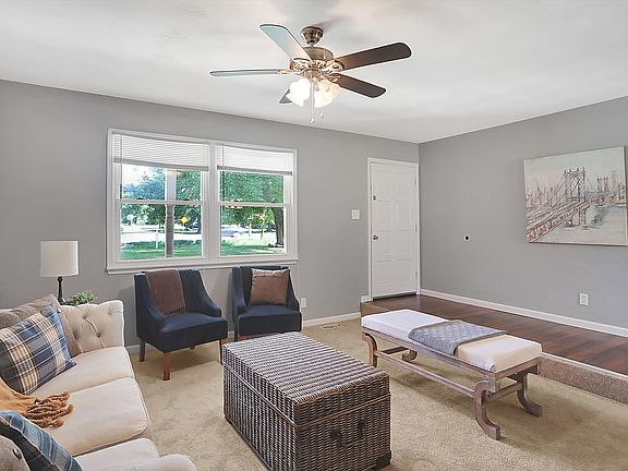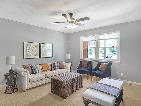 Quality built brick ranch on a large lot with mature trees!! 3 bedrooms + 2 full baths. Updated throughout from fresh paint / updated bathrooms with tiled surrounds/ freshly cleaned carpets/ stunning kitchen with stainless steel appliances. Brand new roof in June 2024. The backyard is ideal with paver patio, firepit, a hot tub in the spa house, + a shed for storage. 2 separate living areas. All kitchen appliances included + the washer & dryer. Check it out!!