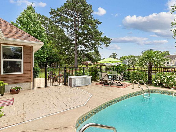 This beautiful and well maintained home is located in the coveted neighborhood of The Lakes. One of the many highlights of the home is the family room that has a spectacular view of the lake. From the family room, you have access to a screened porch that opens to the private pool and deck, overlooking the lake. This is truly a private oasis, with beautiful landscaping and patio. The formal living room has a wood burning fireplace that is visible from the dining room and living room, and also has built in shelving, and a wet bar complete with lighted cabinets above. The dining room has crown molding and there is wainscoting throughout the main living areas. The kitchen has a great view of the lake through the family room, has granite counter tops, backsplash, work island with electric cooktop, and wine rack with extra cabinets for great storage. The primary bedroom is large with an ensuite bath that was completely remodeled. There is also access to the screened porch from the primary bedroom, which is very convenient to the pool area. This is a split bedroom plan, and each of the other two bedrooms have large walk-in closets, in addition to the primary. This is a wonderful opportunity to own your own place at the beach, with the privacy you want. Come and enjoy life at the beach, you will be glad you did. Measurements are approximate and should be verified by buyer.