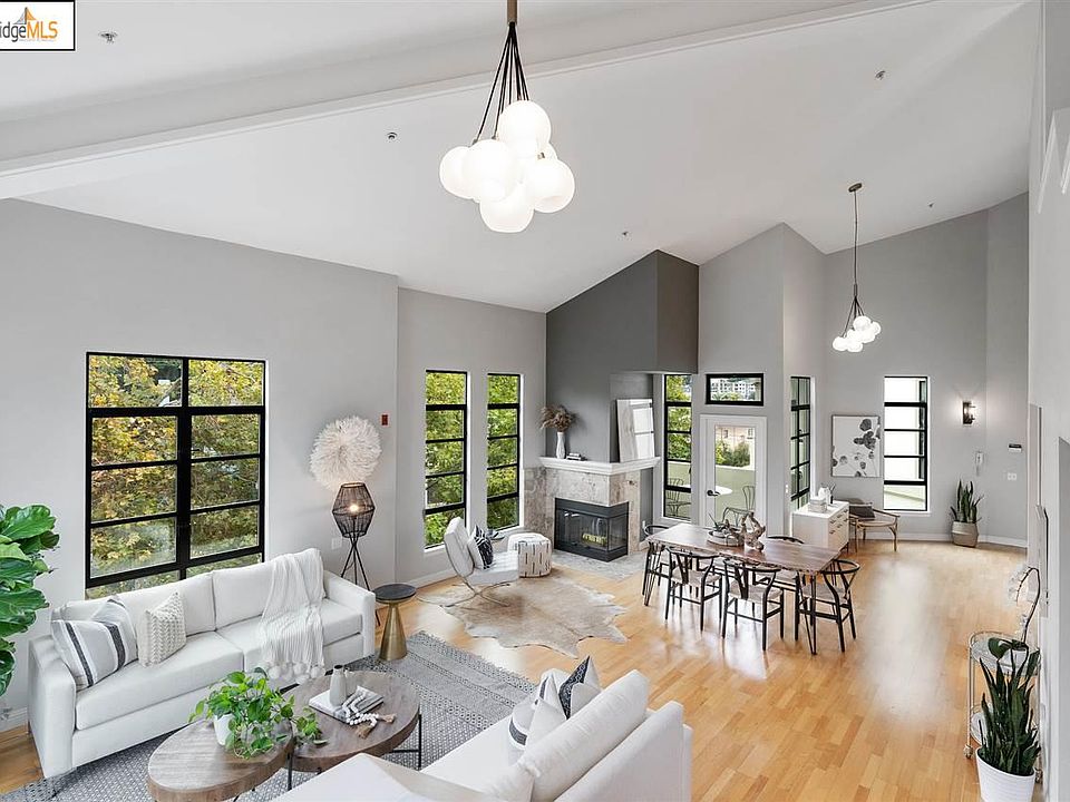 As soon as you open the door of this stunning Grand Lake Terrace penthouse, the volume, light & openness takes your breath away. With soaring vaulted ceilings and floor to ceiling windows, this deluxe 1604sf, 2-story corner penthouse has 2 en suite BRs & 2 private balconies and is flooded w natural light from 3 sides. An open concept great room offers multiple spaces to relax, enjoy the fireplace, dine & entertain. A private balcony is surrounded by trees, creating a tranquil spot for morning coffee or evening sunsets. Upstairs is a grand BR suite w a private balcony overlooking the Oakland Hills, vaulted ceilings & large walk-in closet. The main floor BR is large w vaulted ceilings & great natural light. Grand Lake Terrace is a boutique 12-unit bldg w pride of ownership and a well-funded HOA. The PH floor is accessed only by those residents, creating privacy & security. 1-car pkg, in-unit laundry, extra storage, HOA dues: $712/mo.