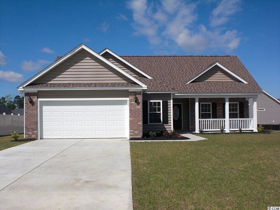 One of Beverly Homes Premier Communities in the Conway area, this Beautiful 3BR/2BA Dogwood Model with split bedrooms, 21X6 front porch, plus patio. Open floor plan with vaulted ceiling through living area and kitchen. Walk in pantry closet, breakfast bar, stainless steel kitchen appliance package includes range, microwave and dishwasher. Laundry room, ceiling fan/w light in great room and master bedroom. 9 foot ceilings in Bedrooms 2 & 3. Spacious master bedroom with tray ceiling, walk-in-closet, 5' shower, linen closet. Added Sunroom, rails on front porch. Premium lot. Covered rear porch, Dual sinks in master. Sodded yard with up to 14 pallets of sod, extra large garage with workshop area. All of our New Homes in TANGLEWOOD are built with a "Maintenance Free" Lifestyle in Mind. Beverly Homes is the Grand Strand area Leader in Building affordable homes. Take comfort in one of our newly constructed homes that has a reputation for quality and value. Whether you are a first-time home buyer or looking for your next home, A Beverly Home Community is sure to have a home that suits your lifestyle and Needs. Let us help you through the buying process and welcome you to your new home. The _TANGLEWOOD____ Sales and Information Center is Open Daily.Close to historic Conway and only 30 minutes to the Beach. Call or visit our sales office today.