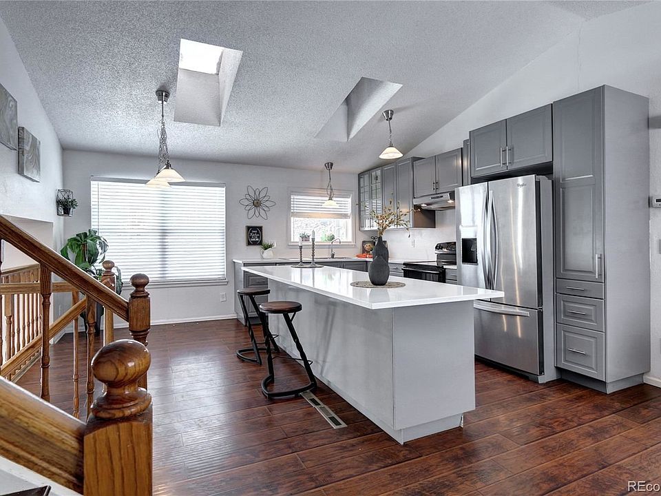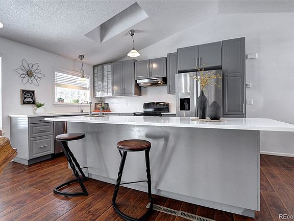 Beautifully remodeled home with a convenient location in a sought-after Highlands Ranch neighborhood. Updated modern kitchen with a large island and an open floor plan. High ceilings and skylights make the space always bright and airy. Large master bedroom features vaulted ceiling and a walk-in closet upstairs. On the same level are two additional bedrooms and another full bath. The finished basement bedroom can be used for guest or an office. Brand new furnace and A/C were installed within the last 5 years. Prime and convenient location to get in & out. Excellent schools. It's a great place to call home.