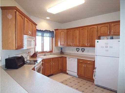 One-owner ranch condo with 3 bedrooms, 3 baths, 2 car attached garage and over 2000 sq ft finished. Built in 2002, this condo has a spacious open kitchen with breakfast bar, many cupboards and ample counter space, a pantry and built-in desk. The 1st floor laundry is off the kitchen, yet can be closed off by an added door. All appliances are included. The vaulted great room faces south and has a nook for a bookcase, exit to deck and designated dining area. The lower level has another bedroom, walk-in closet, bath and rec room plus plenty of storage. There is also a sprinkler system, a home warranty and low monthly utilities of $64 for elec and $37 for gas. All this on a quiet street. Low monthly assoc dues are only $107.36.